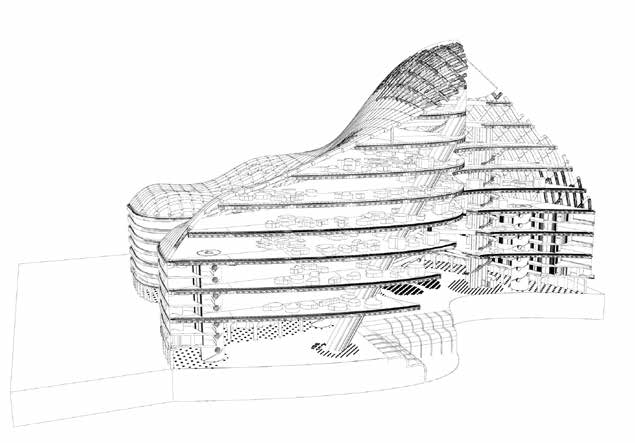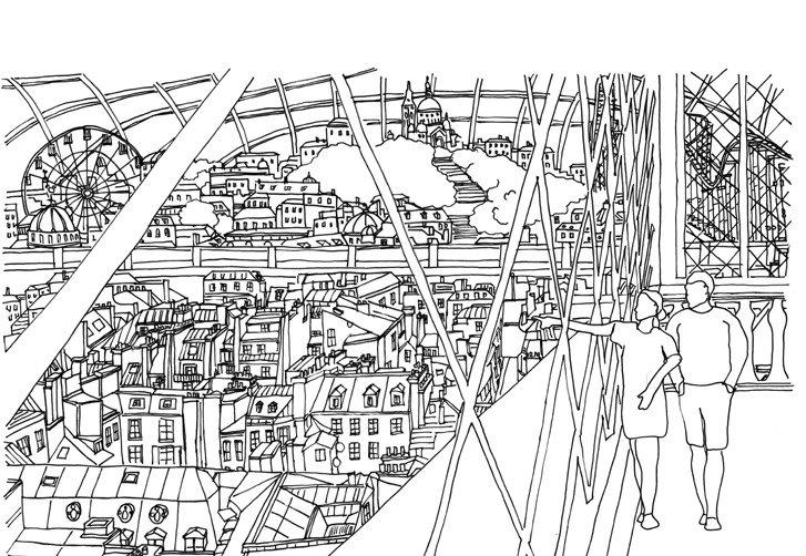 Using the very limited number of documents available to us, we reimagined his project as the biggest mall in the world at that point. In our second phase we imagined political and financial turmoil and change, leading to it becoming a theme park, whose subject was Paris itself. This project was a sort of criticism to the way we deal with our towns as if they were amusement parks.